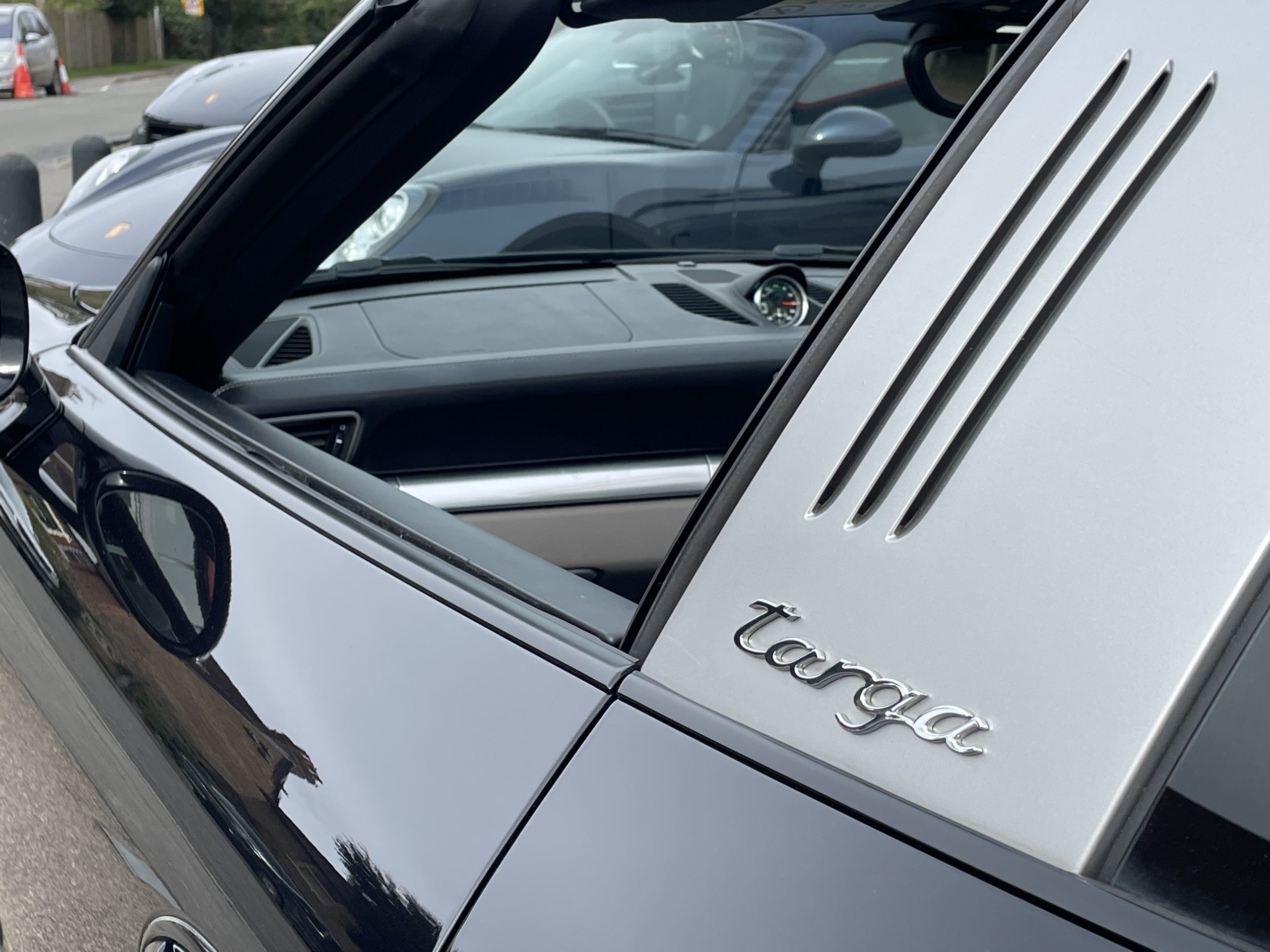 A stunning 991 Targa 4S finished in Jet Black Metallic trimmed with full two tone Black and Platinum Grey leather interior extended to the doors and dash. This comes equipped with PCM satellite navigation, 20″ Carrera S alloys, Sport Chrono package plus, LED main headlights Porsche dynamic lighting system plus (PDLS+), sports exhaust, BOSE surround sound, heated seats, heated steering wheel, power steering plus, smoking package, 14-way electric seats, cruise control, front and rear park assist, sport design mirrors, Porsche crest embossed on headrest, illuminated door sill guards in stainless steel, air conditioning, trip computer. Cridfords Ltd, independent Porsche specialists since 1987, supplied with a full service history and 12 months’ warranty. Ask us about the Cridfords Care Package (available on cars up to 10 years old at point of sale) including an additional 12 months’ warranty and Gtechniq ceramic coating for only £1,295. Finance available from 6.9% APR and part exchange welcome.