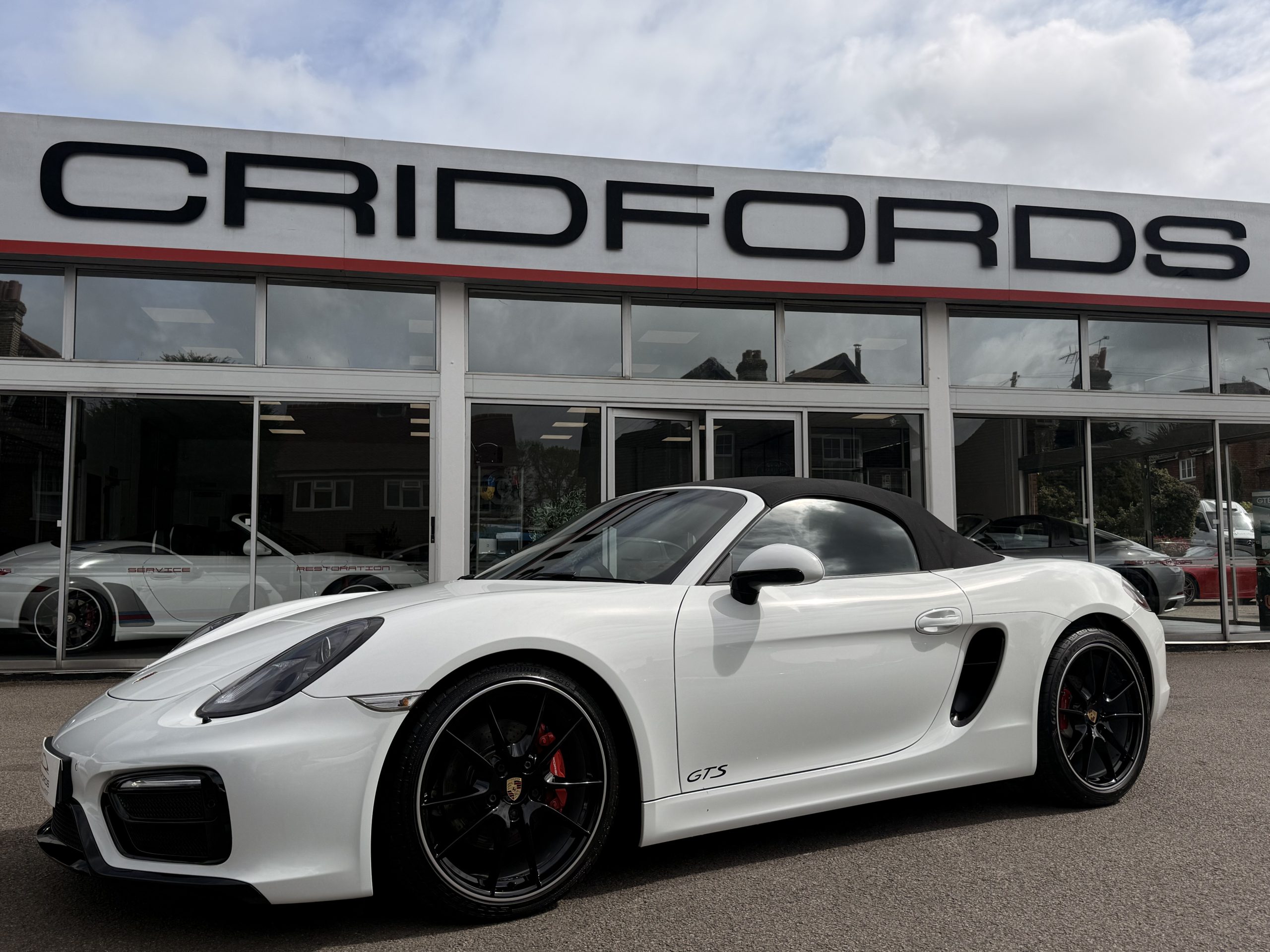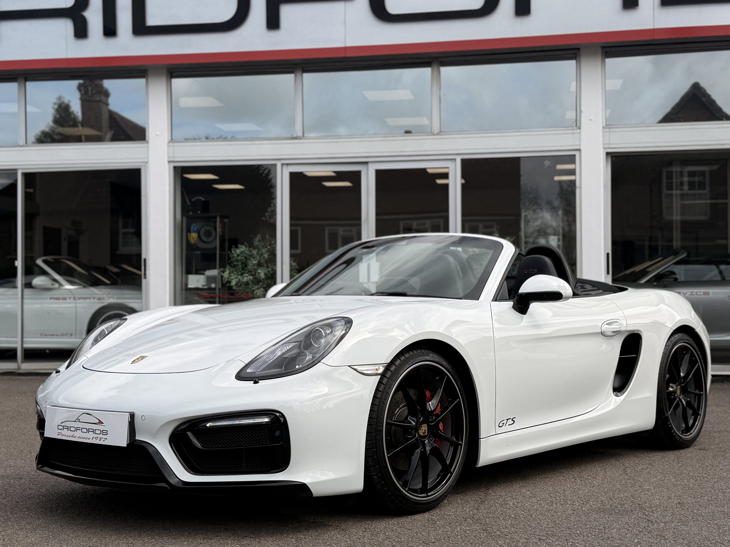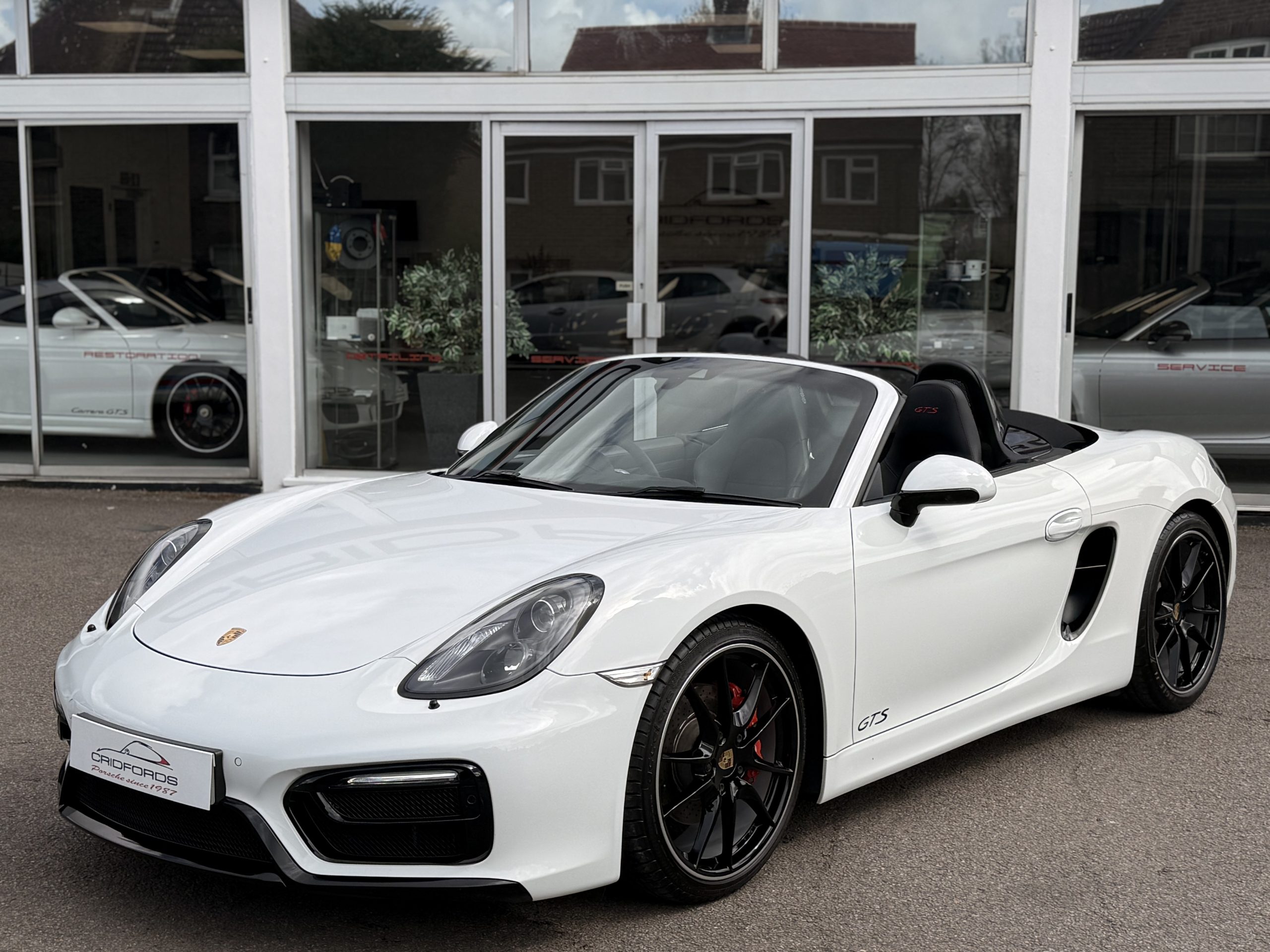 A great example 981 Boxster GTS finished in Weiss trimmed extended GTS interior package in Carmine red. This comes equipped with PCM Porsche satellite navigation system, 20″ spyder RS alloys, sport Chrono package plus, Porsche switchable sports exhaust, Porsche active dynamic mounts (PADM), Bose surround sound system, exterior package gts black, heated seats, two zone automatic climate control, park assist front and rear, air conditioning, trip computer. Cridfords Ltd Independent Porsche Specialists since 1987, supplied with a full service history and 12 months warranty. Ask us about the Cridfords Care Package (available on cars up to 10 years old at point of sale) including an additional 12 months warranty and Gtechniq ceramic coating for only £1,495. Finance available from 7.5% APR and part exchange welcome.