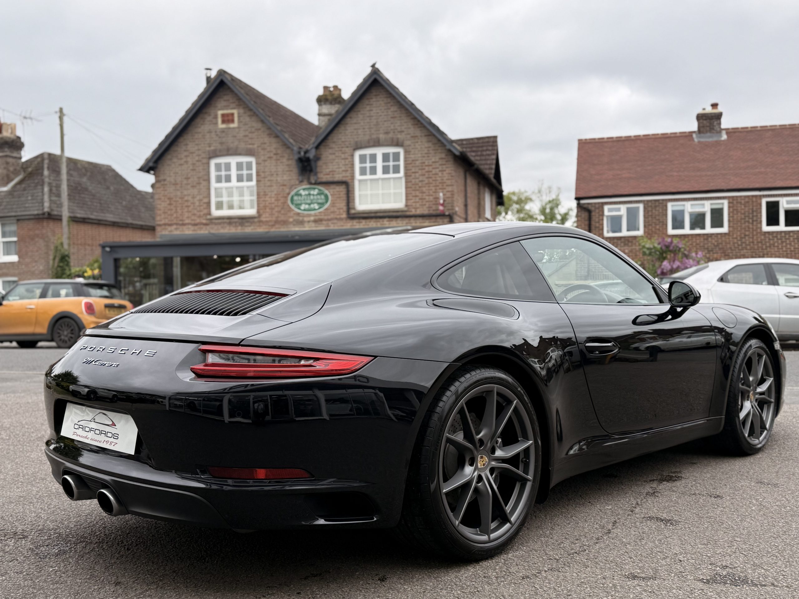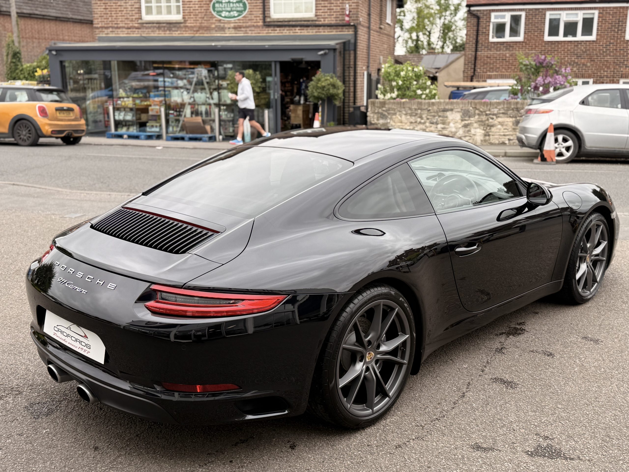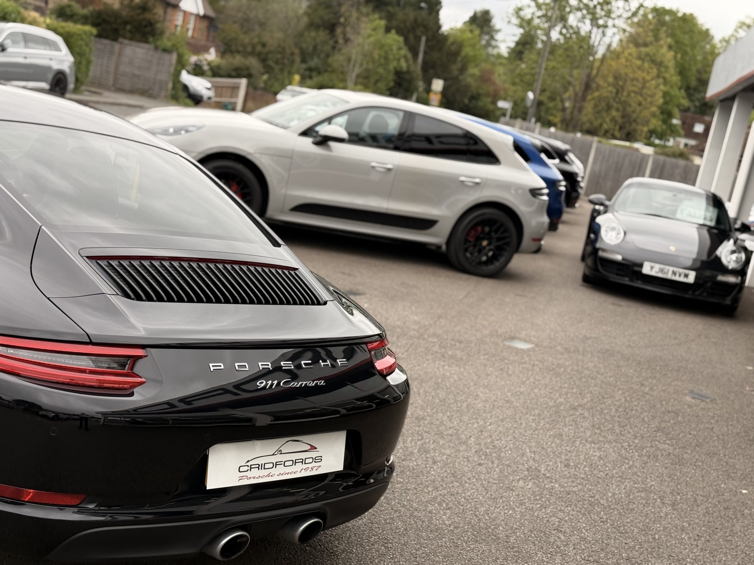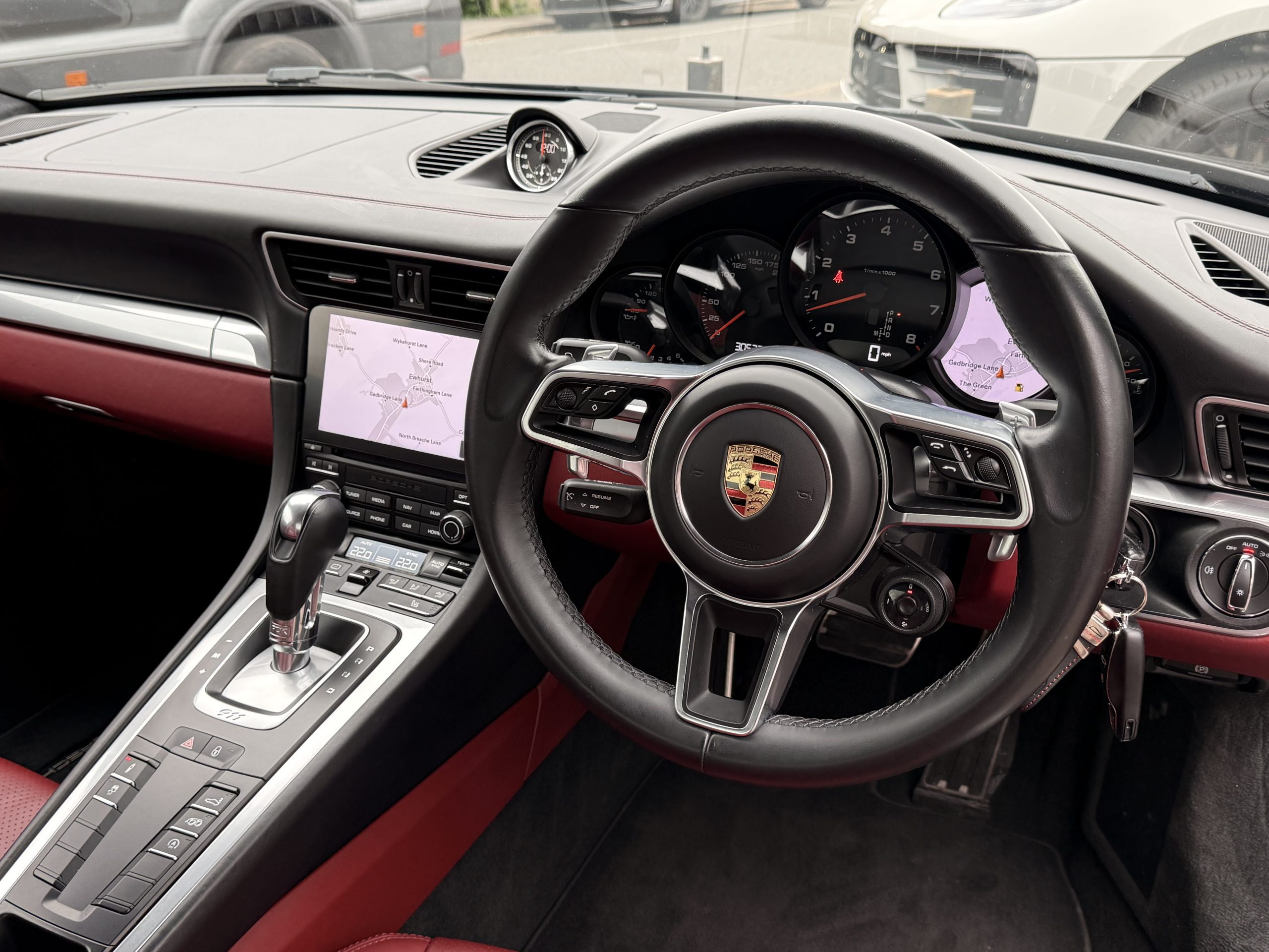 A lovely 991.2 Carrera finished in Jet black metallic trimmed with bordeaux red leather extended do the doors and dash. This comes equipped with PCM satellite navigation, 20″ Carrera S alloys, sport Chrono package plus, Porsche switchable sports exhaust, Porsche active dynamic mounts (PADM), LED main headlights including Porsche dynamic lighting system plus (PDLS+), heated multi function steering wheel, automatically dimming mirrors with integrated rain sensor, front and rear park assist, electrical 4 way adjustable sports seats, Porsche crest embossed on head restraints, air conditioning, trip computer. Cridfords Ltd Independent Porsche Specialists since 1987, supplied with a full service history and 12 months warranty. Ask us about the Cridfords Care Package (available on cars up to 10 years old at point of sale) including an additional 12 months warranty and Gtechniq ceramic coating for only £1,495. Finance available from 7.5% APR and part exchange welcome.