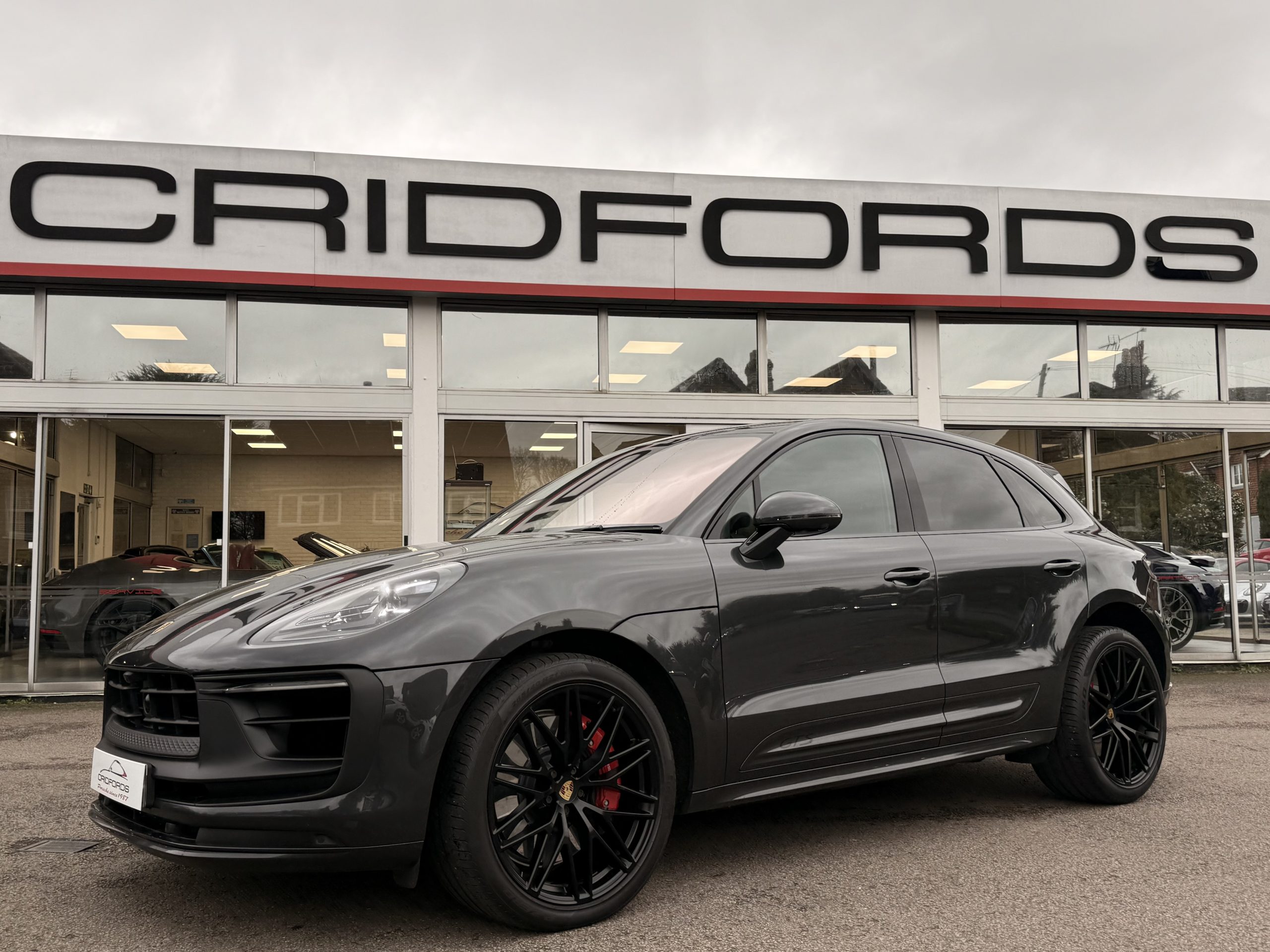 A lovely 2022 model Macan GTS finished in Volcano Grey trimmed with the GTS interior package with full black leather and alcantara stitched Crayon. This comes equipped with PCM satellite navigation, 21″ Spyder RS alloys in black, self levelling air suspension with Porsche active suspension management (PASM), sport Chrono package plus, tinted LED main headlights including Porsche Dynamic Light System (PDLS), 18-way adaptive sports seats plus with electrically adjustable steering column and memory package, surround view with front and rear park assist, electrically extending towbar system, BOSE sound system, adaptive cruise control, side blades in exterior colour with GTS Logo in gloss black, heated multifunction GT sports steering wheel trimmed in leather, smartphone compartment with wireless charging, heated windscreen, rain sensing wipers, self dimming mirror package, CarPlay, 3 zone climate control/air conditioning and trip computer. 2022 model, registered 2021/71. Cridfords Ltd, independent Porsche specialists since 1987, supplied with a full service history and 12 months’ warranty. Ask us about the Cridfords Care Package (available on cars up to 10 years old at point of sale) including an additional 12 months’ warranty and Gtechniq ceramic coating for only £1,295. Finance available from 6.9% APR and part exchange welcome.
