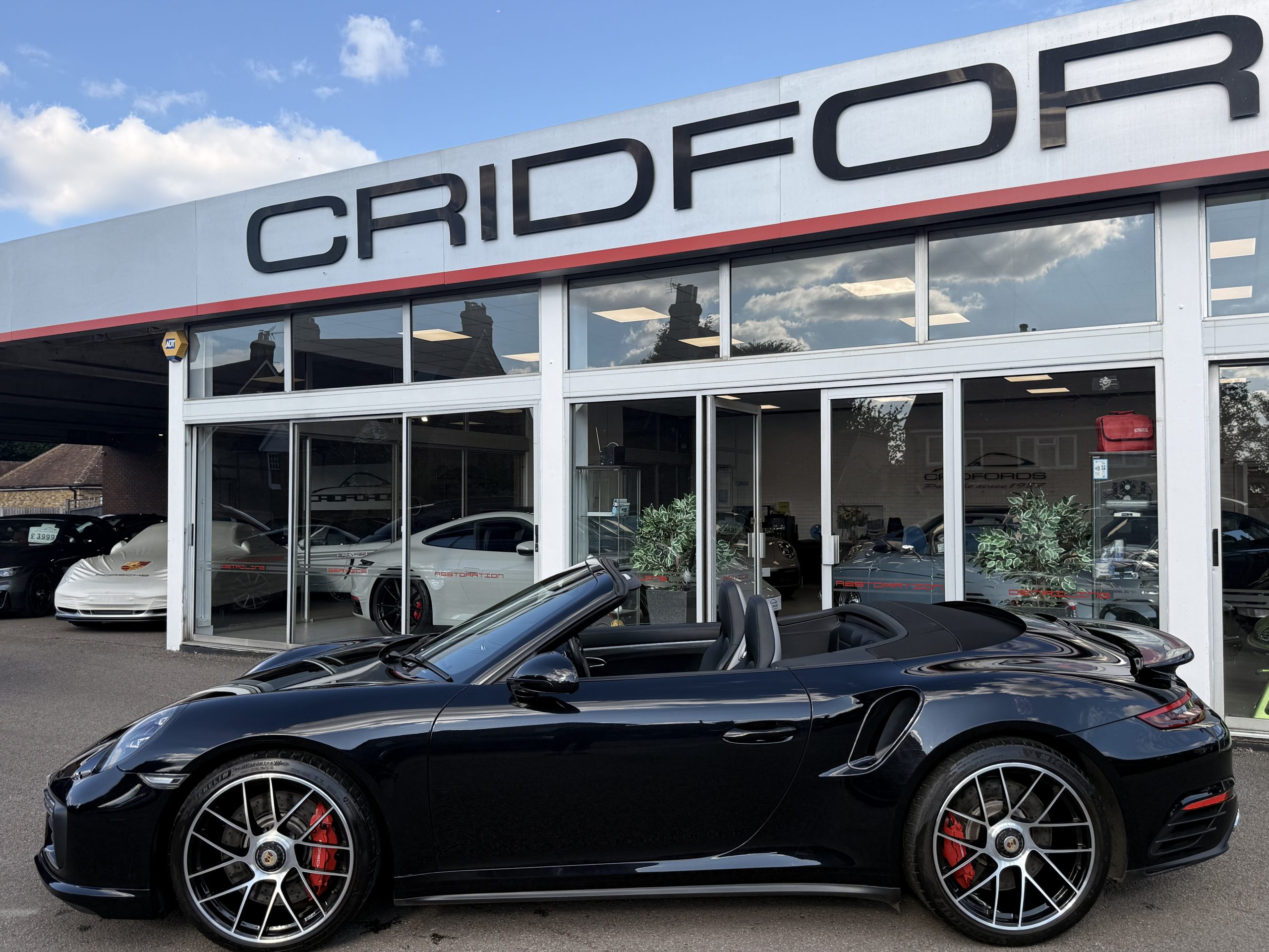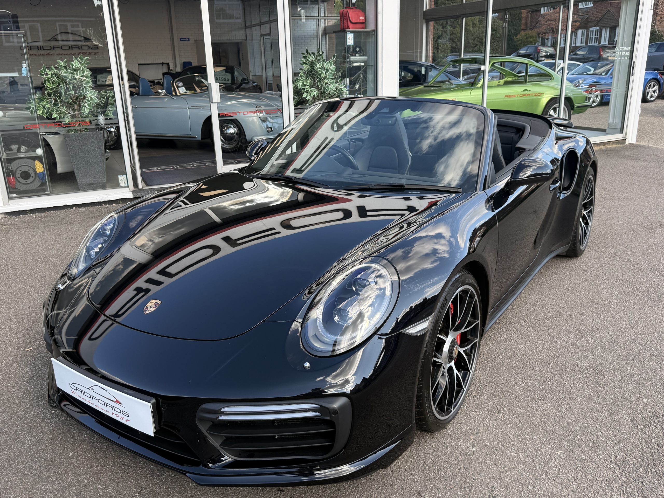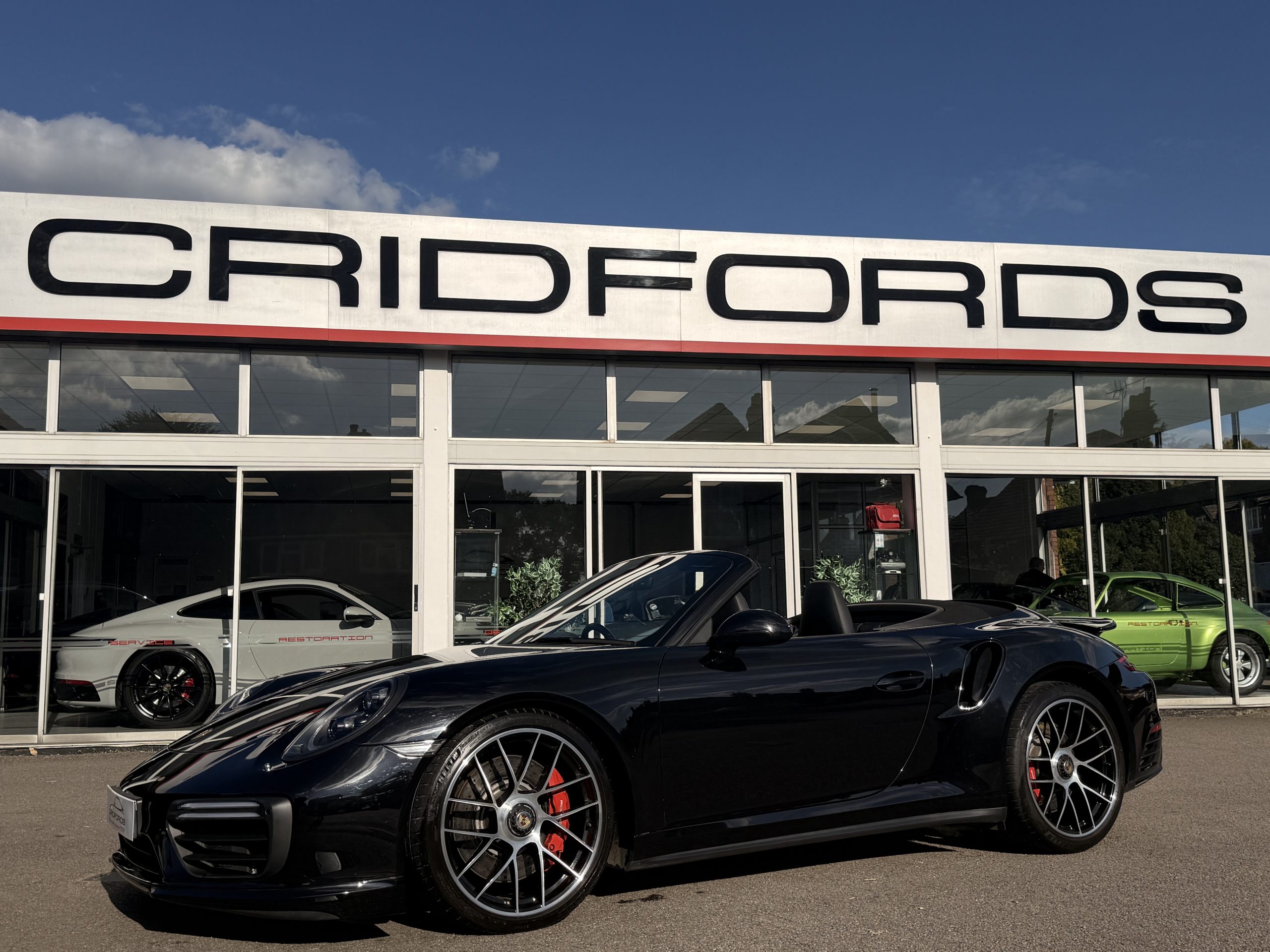 A stunning 911 (991) Turbo finished in Jet Black Metallic trimmed with full black leather. Equipped with PCM satellite navigation system, 20″ turbo sport design wheels, rear axel steering, Porsche dynamic light system plus- PDLS Plus, adaptive sports seats plus – electrical 18 ways, heated multifunction steering wheel, Porsche crest on head restraints and power steering plus.Cridfords Ltd Independent Porsche Specialists since 1987, supplied with a full service history and 12 months warranty. Ask us about the Cridfords Care Package (available on cars up to 10 years old at point of sale) including an additional 12 months warranty and Gtechniq ceramic coating for only £1,295. Finance available at 7.9% APR and part exchange welcome.