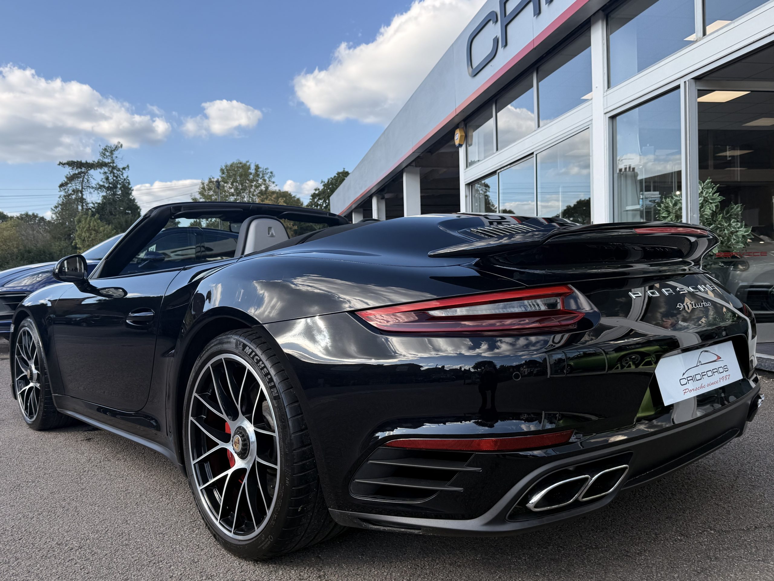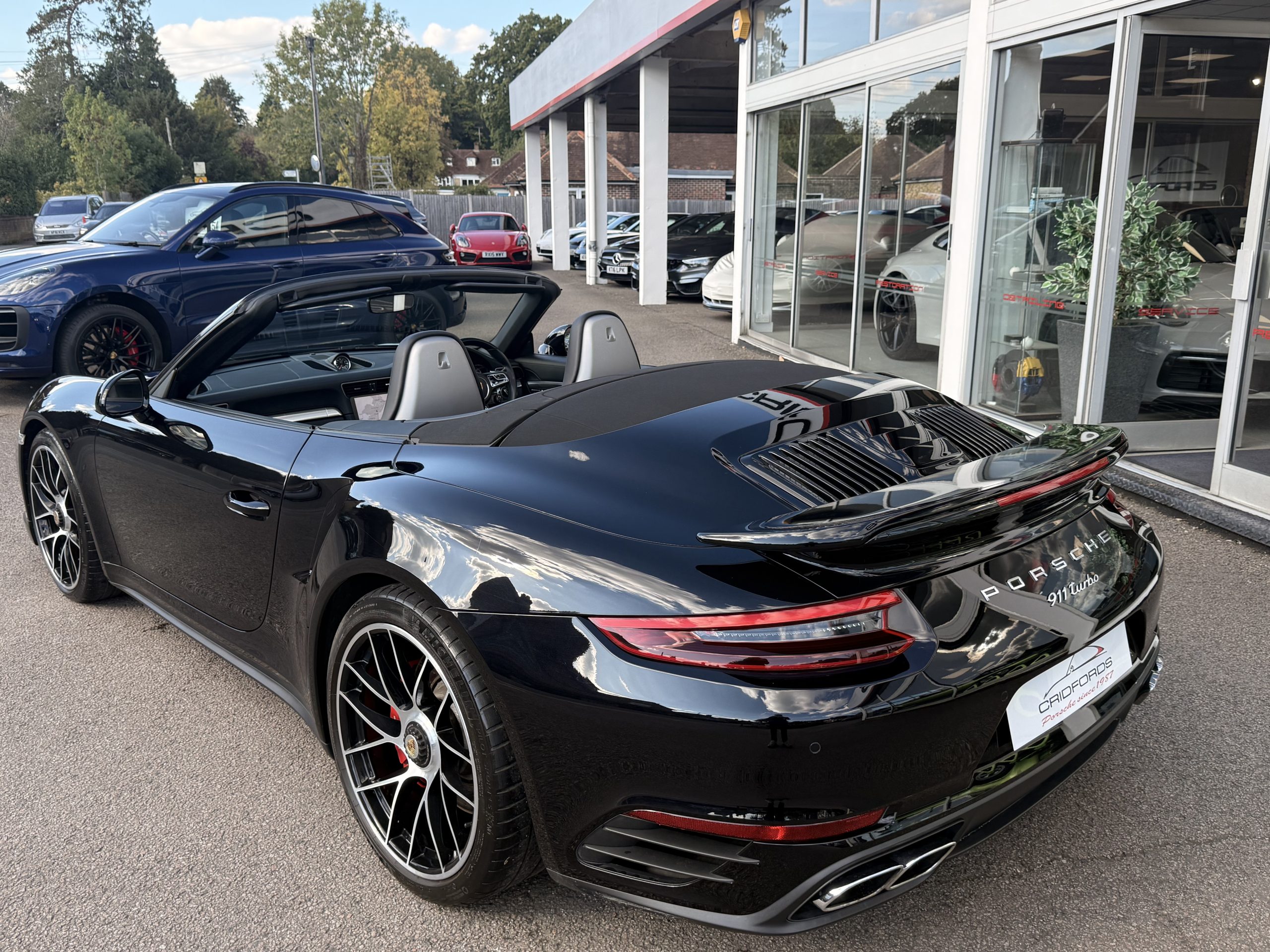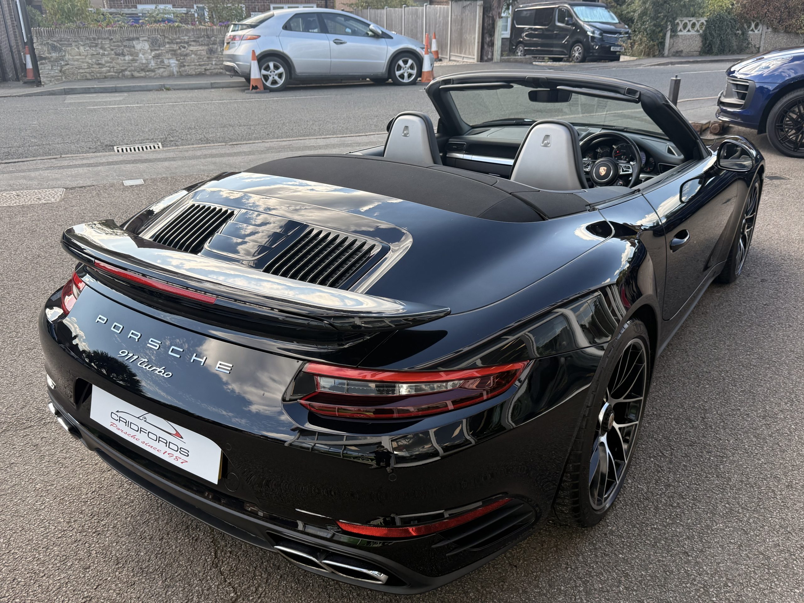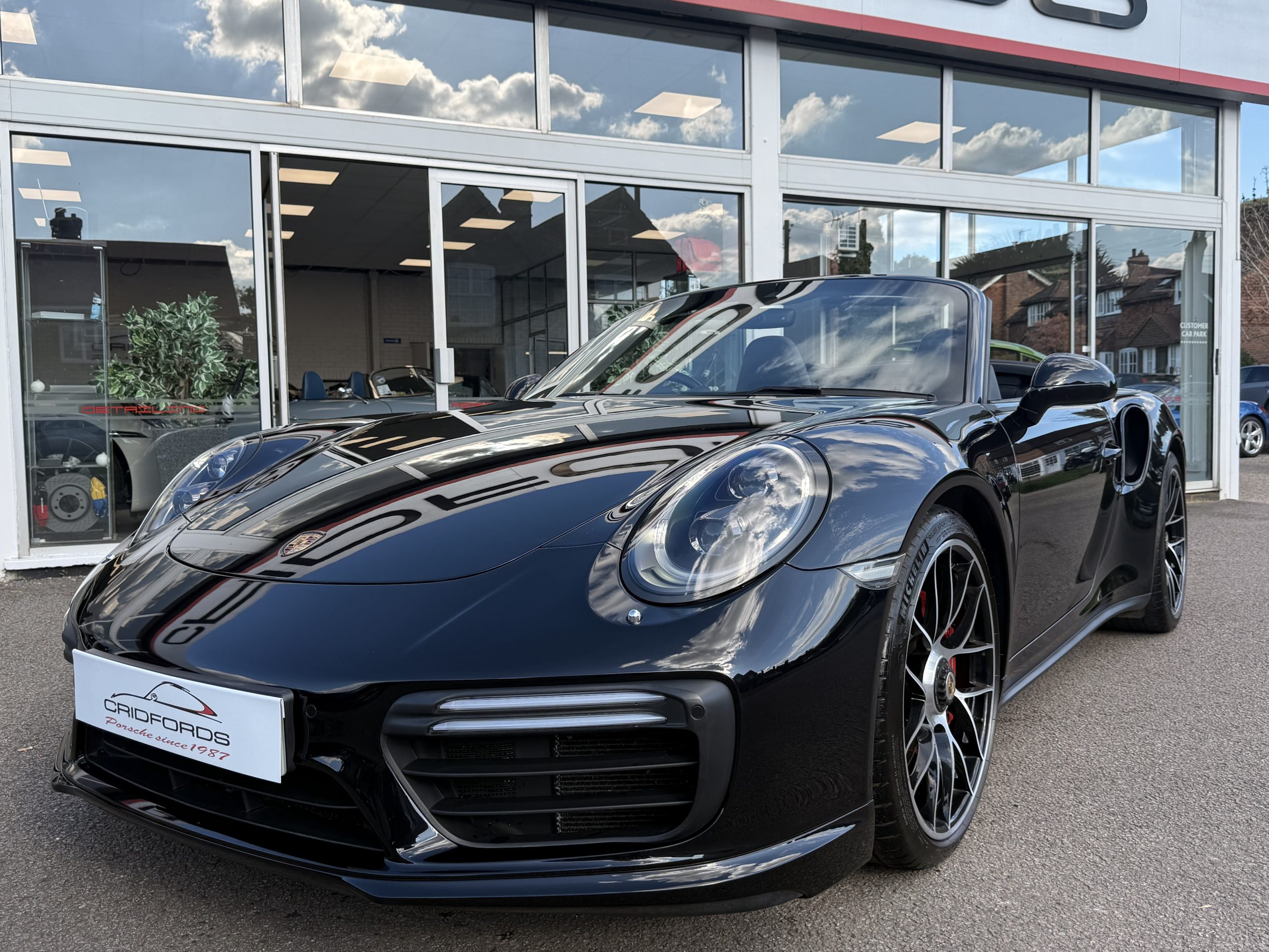 A stunning 911 (991) Turbo finished in Jet Black Metallic trimmed with full black leather. Equipped with PCM satellite navigation system, 20″ turbo sport design wheels, rear axel steering, Porsche dynamic light system plus- PDLS Plus, adaptive sports seats plus – electrical 18 ways, heated multifunction steering wheel, Porsche crest on head restraints and power steering plus.Cridfords Ltd Independent Porsche Specialists since 1987, supplied with a full service history and 12 months warranty. Ask us about the Cridfords Care Package (available on cars up to 10 years old at point of sale) including an additional 12 months warranty and Gtechniq ceramic coating for only £1,295. Finance available at 7.9% APR and part exchange welcome.
