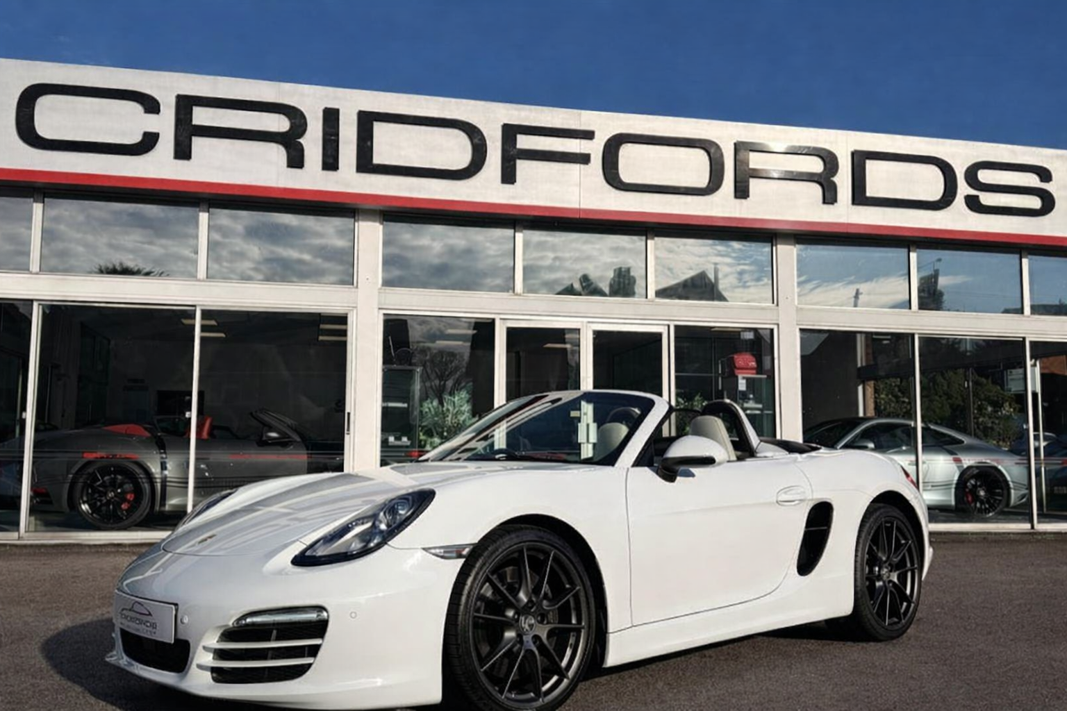A stunning 981 Porsche Boxster finished in Pure White, trimmed with full Agate and Pebble grey leather extended to the doors and dash. This comes equipped with PCM Porsche satellite navigation system, 20″ Carrera S alloys in Satin Platinum, sports seats, heated seats, sports tailpipe, BOSE surround sound system, LED daytime driving lights, multi function steering wheel in smooth leather, front and rear park assist, colour keyed rollover bar, embossed centre console lid, wind deflector, air conditioning and trip computer. Cridfords Ltd Independent Porsche Specialists since 1987, supplied with a full service history and 12 months warranty. Ask us about the Cridfords Care Package (available on cars up to 10 years old at point of sale) including an additional 12 months warranty and Gtechniq ceramic coating for only £1,295. Finance available from 6.9% APR and part exchange welcome.