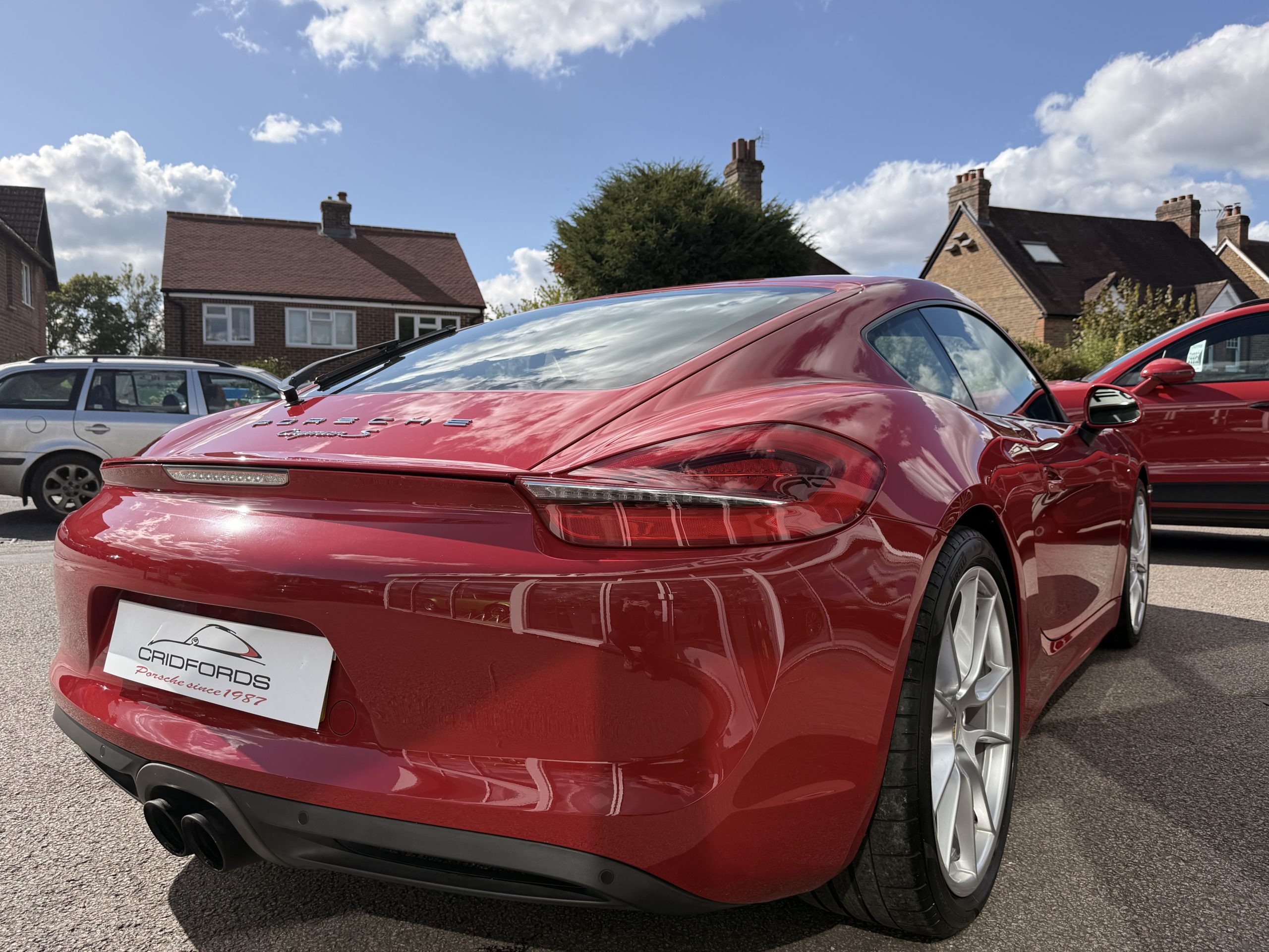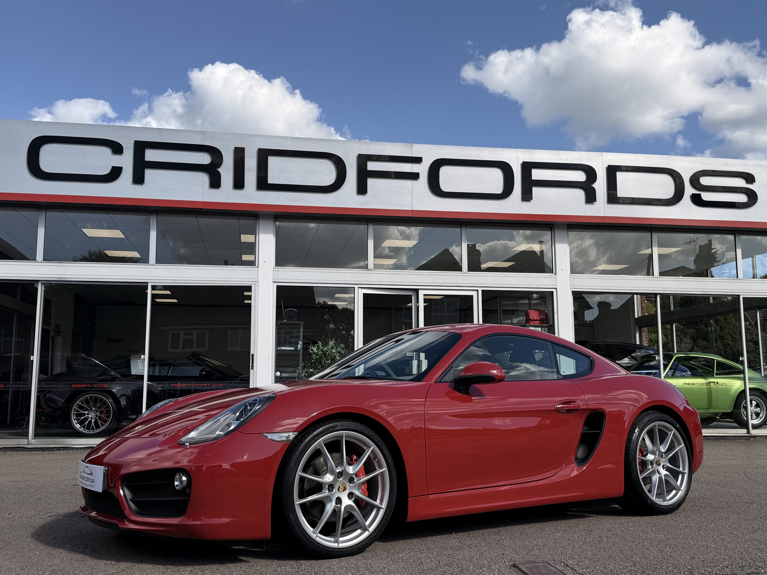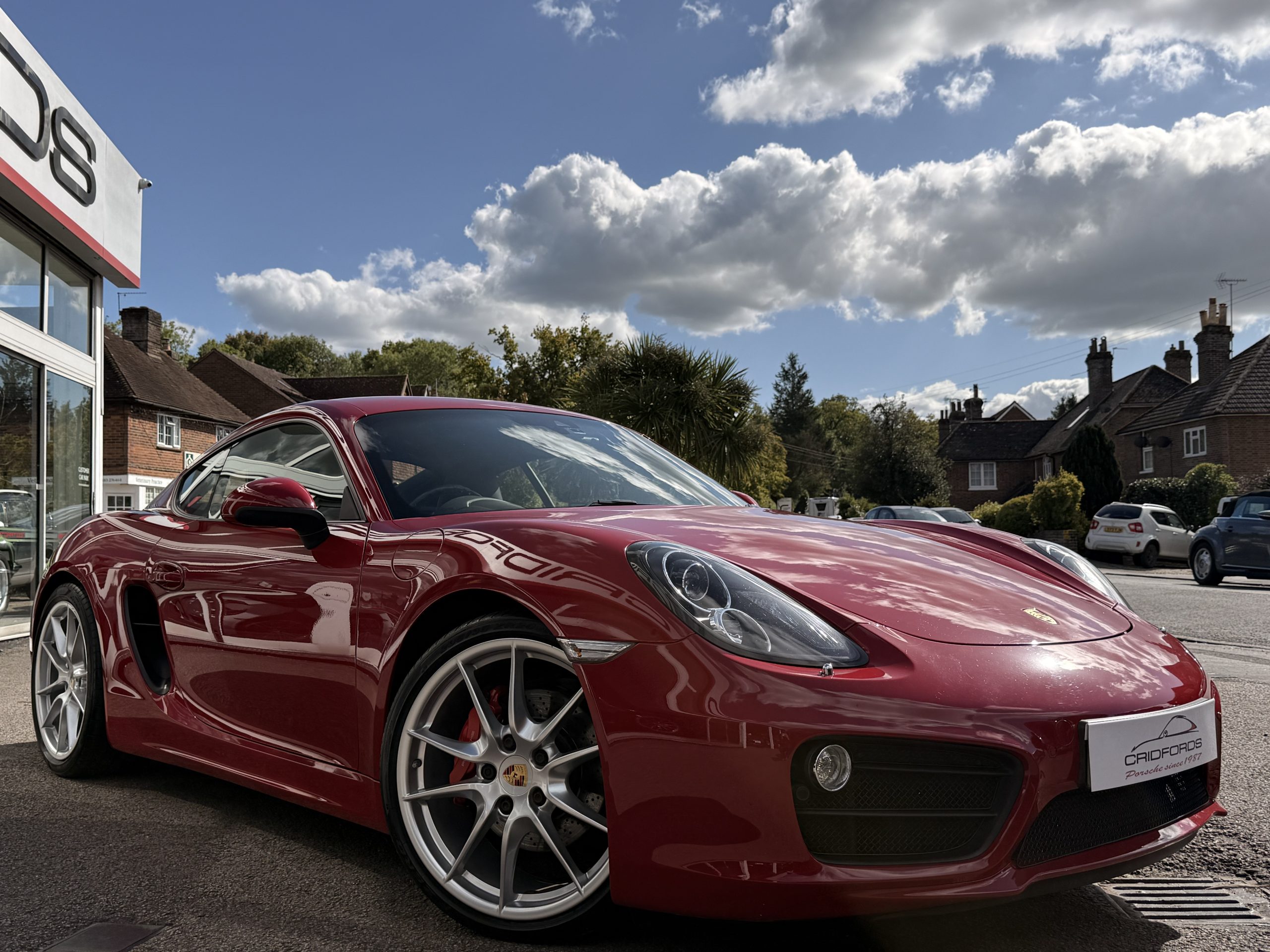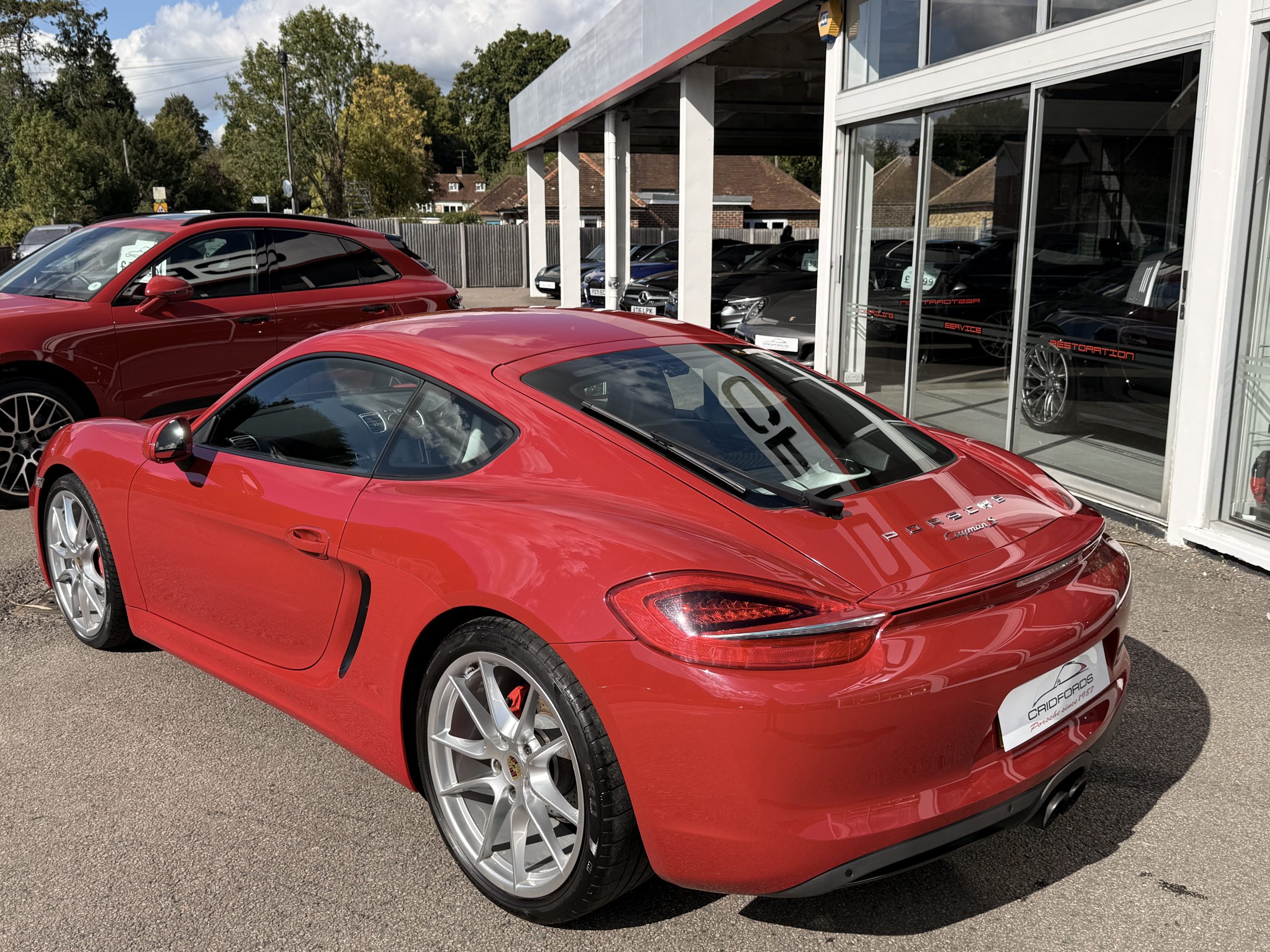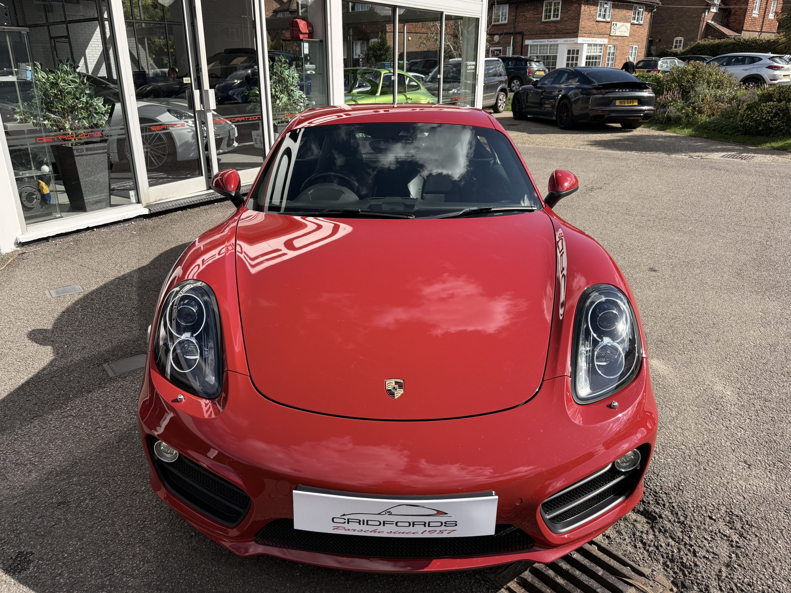 A stunning Cayman S finished in Carmine red trimmed with black leather. Equipped with PCM satellite navigation, 20″ Carrera S alloys, sport Chrono package plus inc. Porsche active dynamic mounts (PADM), Porsche switchable sports exhaust, Porsche active suspension management (PASM), Sport Design steering wheel, electric folding mirrors, rain sensing wipers, self dimming mirrors, front and rear park assist, Bi-Xenon headlamps with Porsche dynamic lighting system plus (PDLS+), hard back sports seats plus, rear wiper, Porsche sound package plus, Bluetooth phone and audio, DAB radio, heated seats, air conditioning and trip computer. Cridfords Ltd Independent Porsche Specialists since 1987, supplied with a full service history and 12 months warranty. Ask us about the Cridfords Care Package (available on cars up to 10 years old at point of sale) including an additional 12 months warranty and Gtechniq ceramic coating for only £1,295. Finance available from 7.9% APR and part exchange welcome.