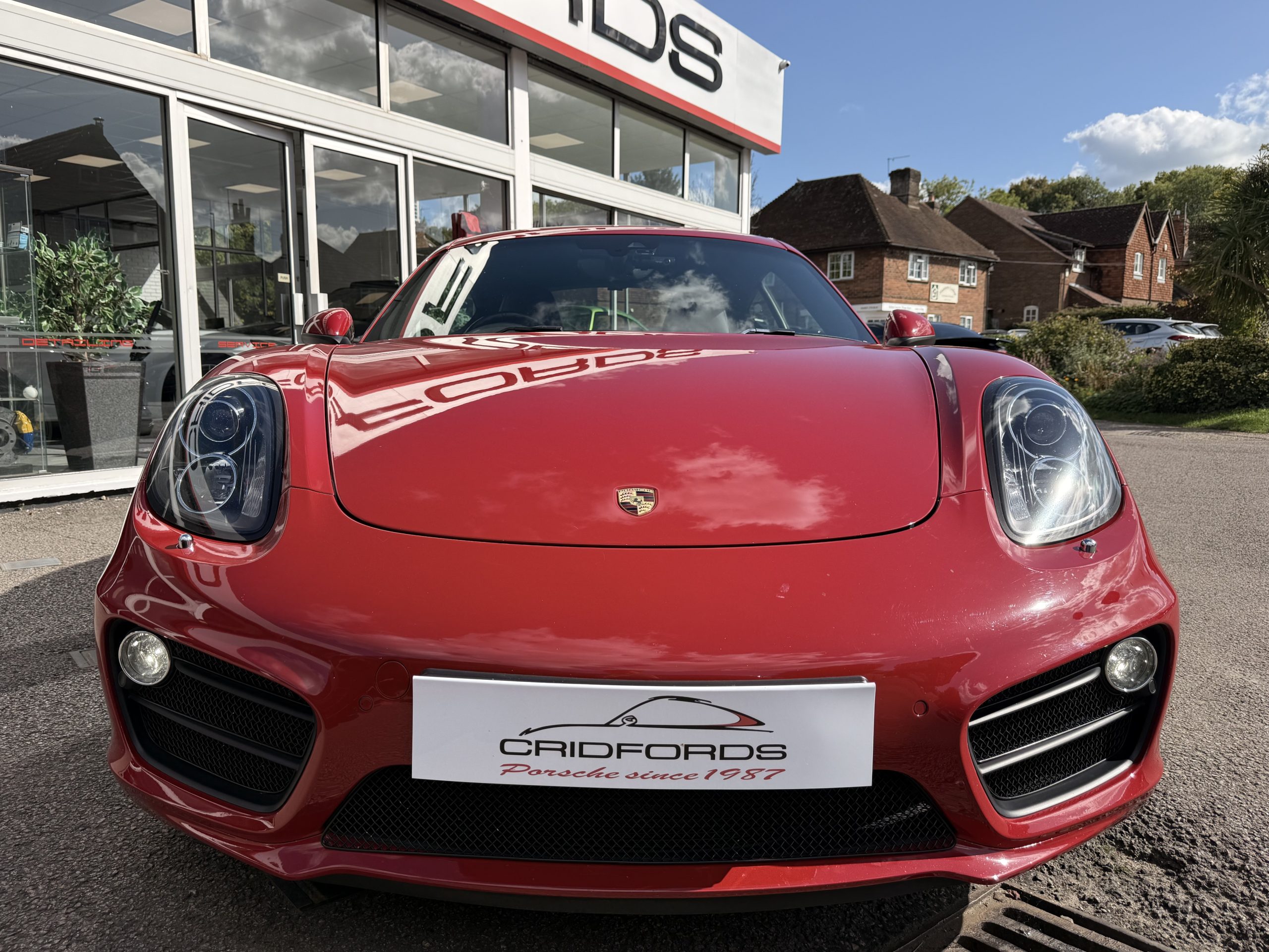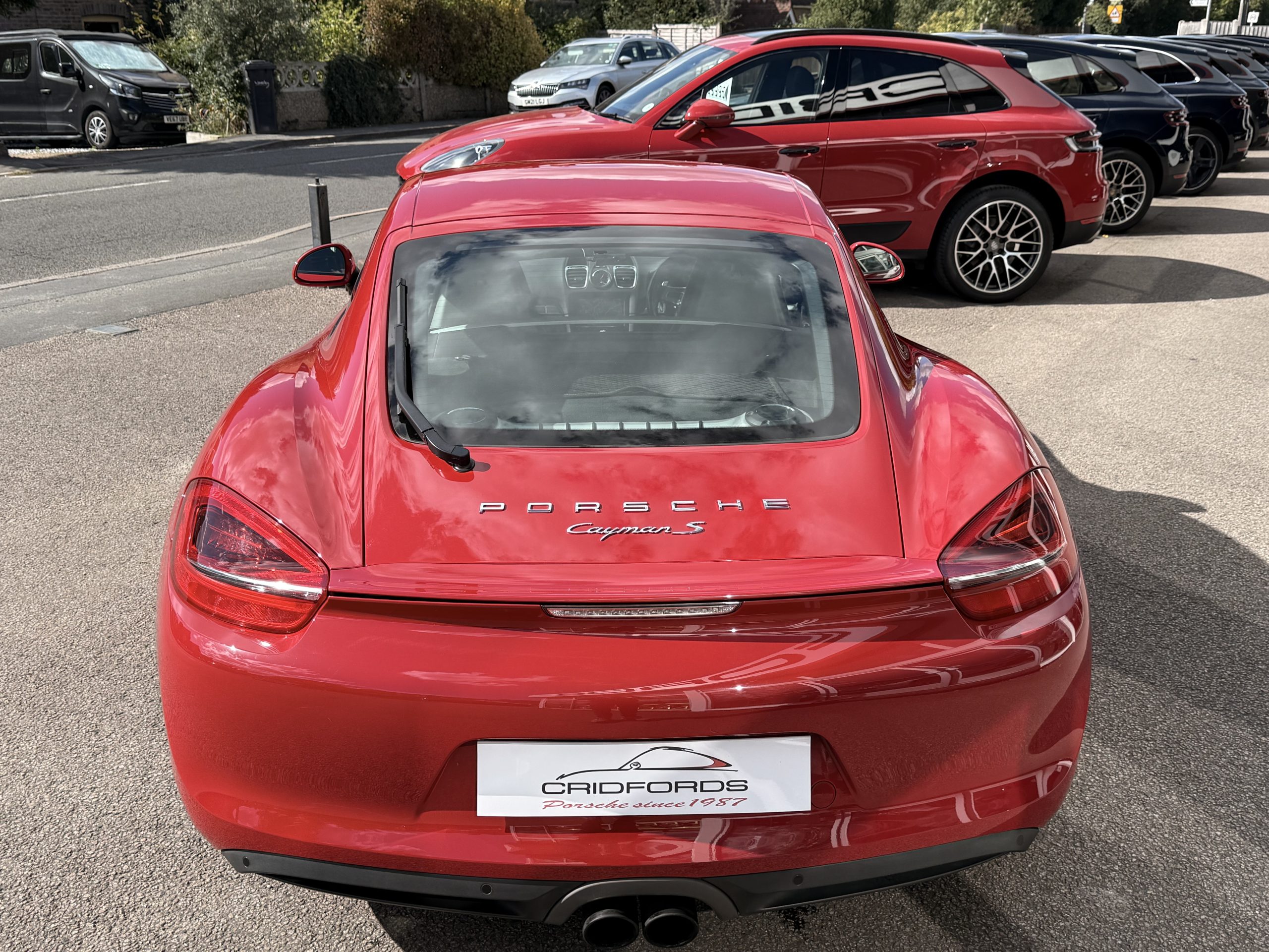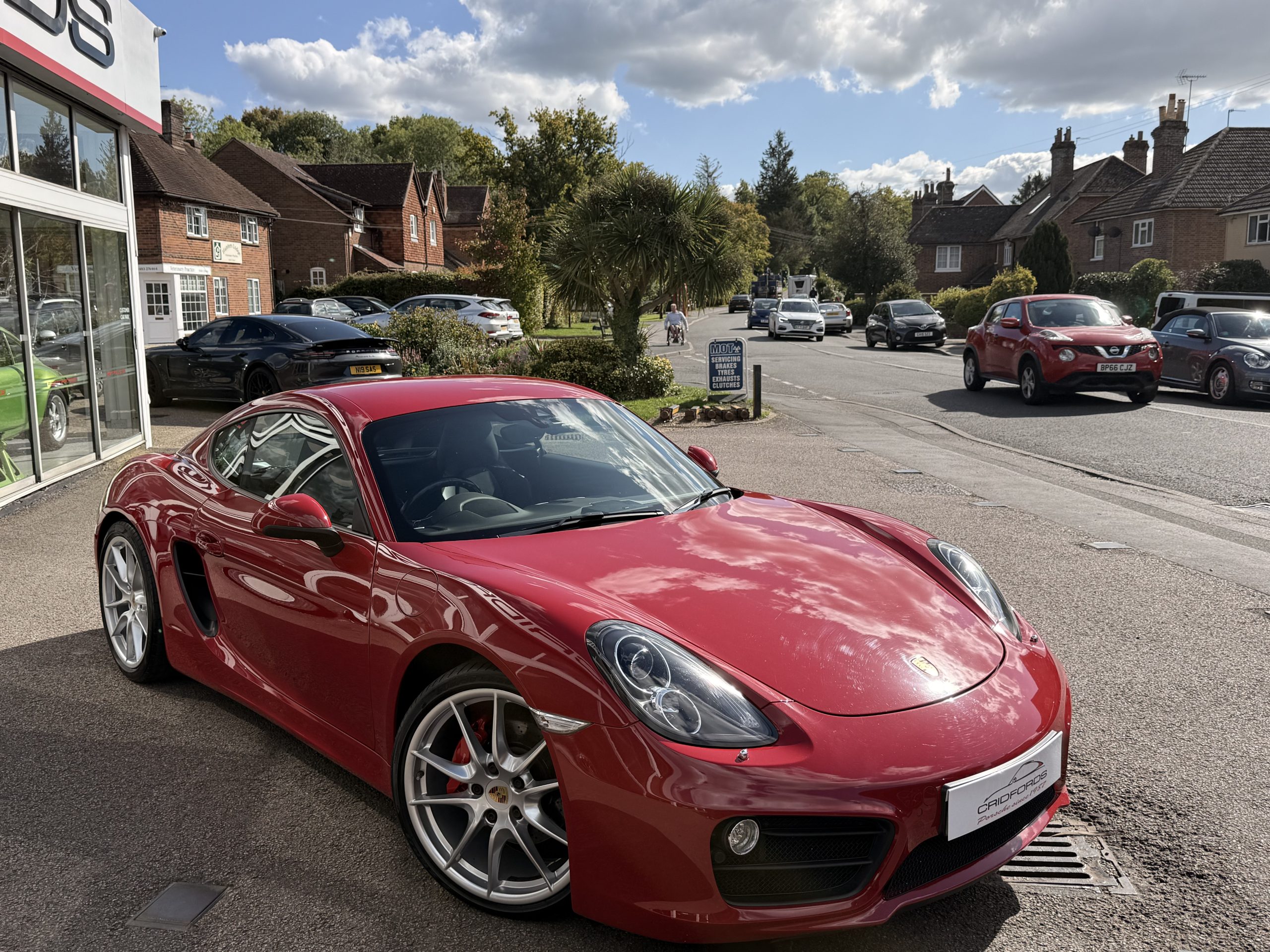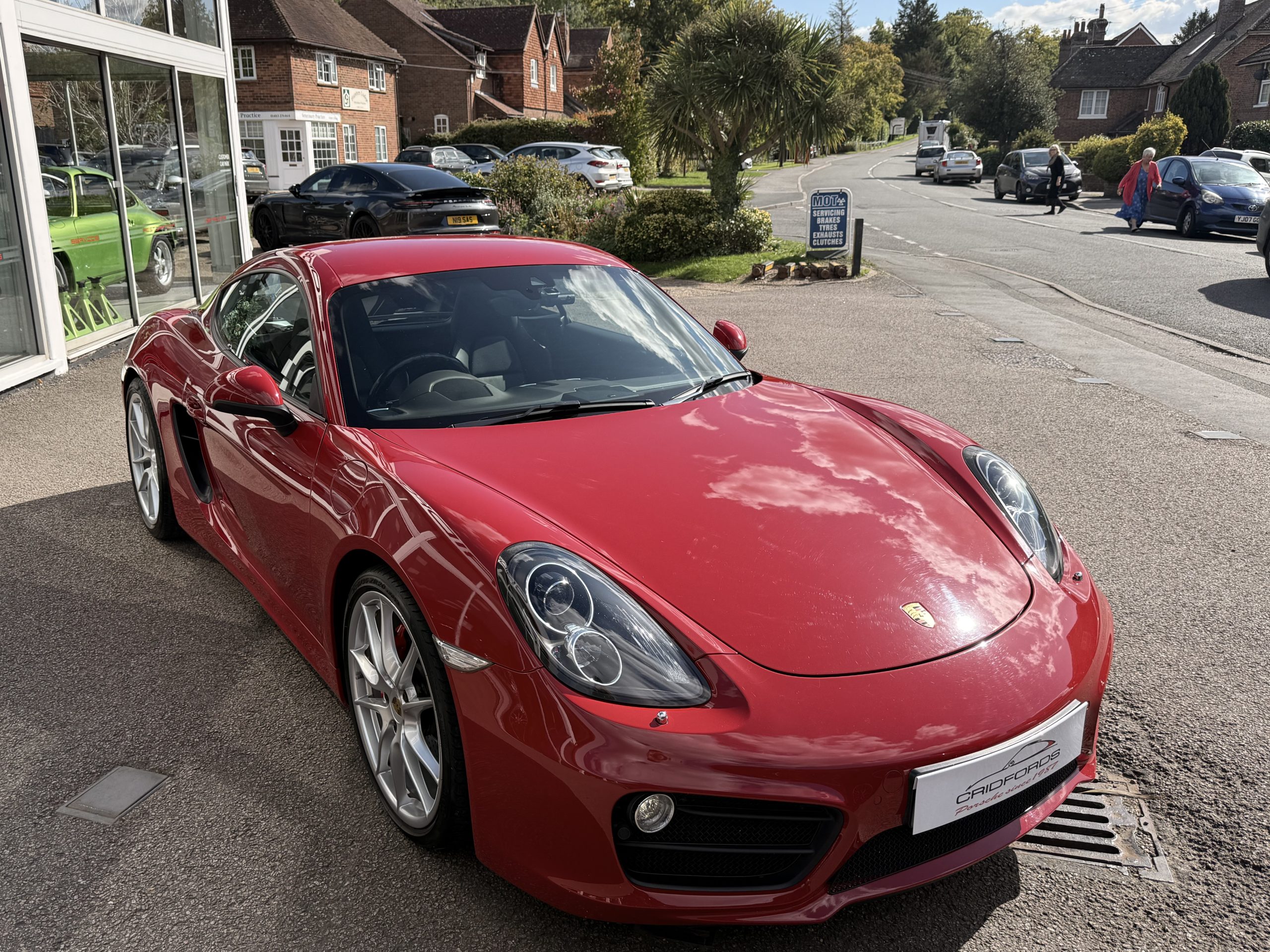 A stunning Cayman S finished in Carmine red trimmed with black leather. Equipped with PCM satellite navigation, 20″ Carrera S alloys, sport Chrono package plus inc. Porsche active dynamic mounts (PADM), Porsche switchable sports exhaust, Porsche active suspension management (PASM), Sport Design steering wheel, electric folding mirrors, rain sensing wipers, self dimming mirrors, front and rear park assist, Bi-Xenon headlamps with Porsche dynamic lighting system plus (PDLS+), hard back sports seats plus, rear wiper, Porsche sound package plus, Bluetooth phone and audio, DAB radio, heated seats, air conditioning and trip computer. Cridfords Ltd Independent Porsche Specialists since 1987, supplied with a full service history and 12 months warranty. Ask us about the Cridfords Care Package (available on cars up to 10 years old at point of sale) including an additional 12 months warranty and Gtechniq ceramic coating for only £1,295. Finance available from 7.9% APR and part exchange welcome.