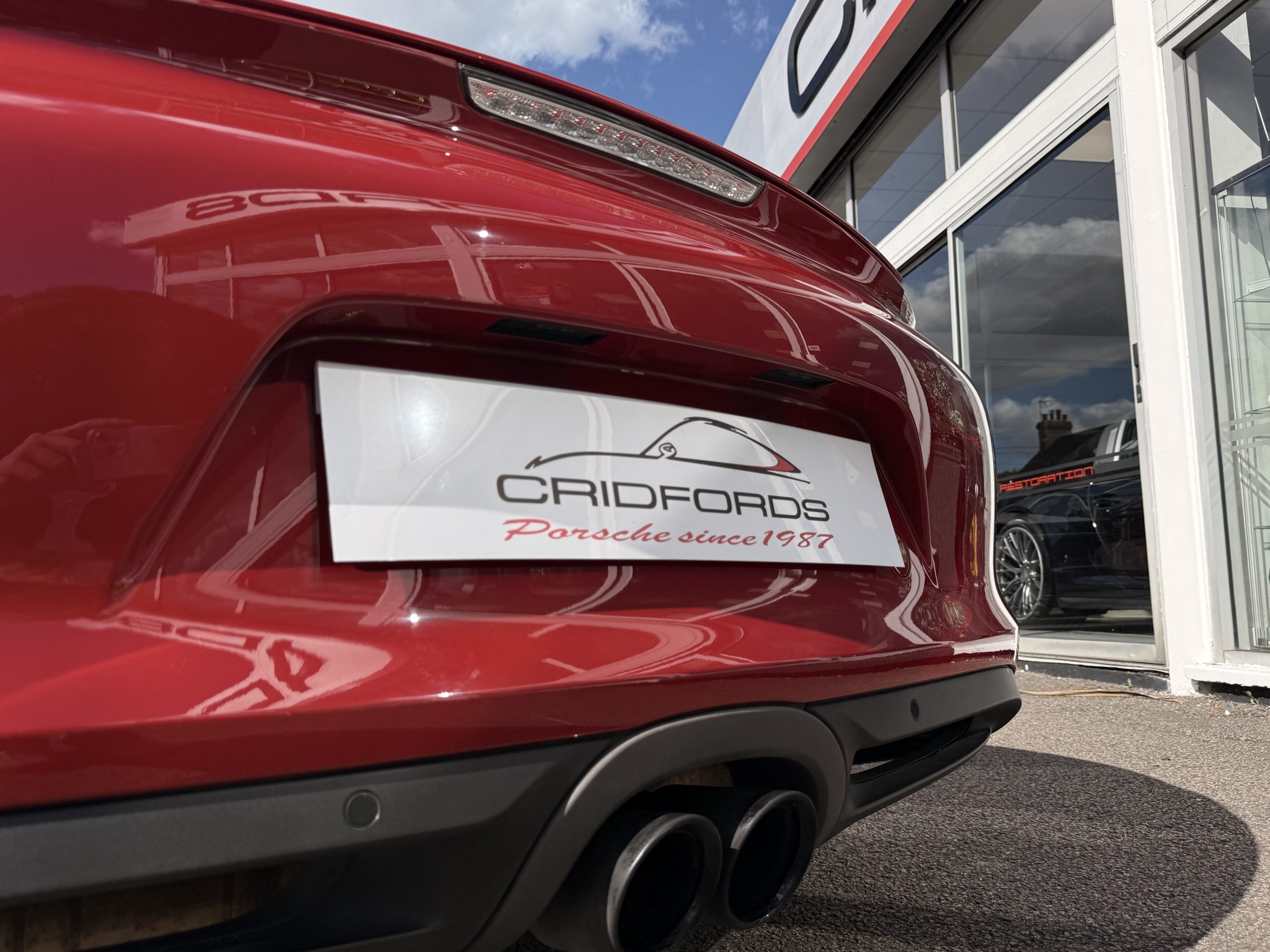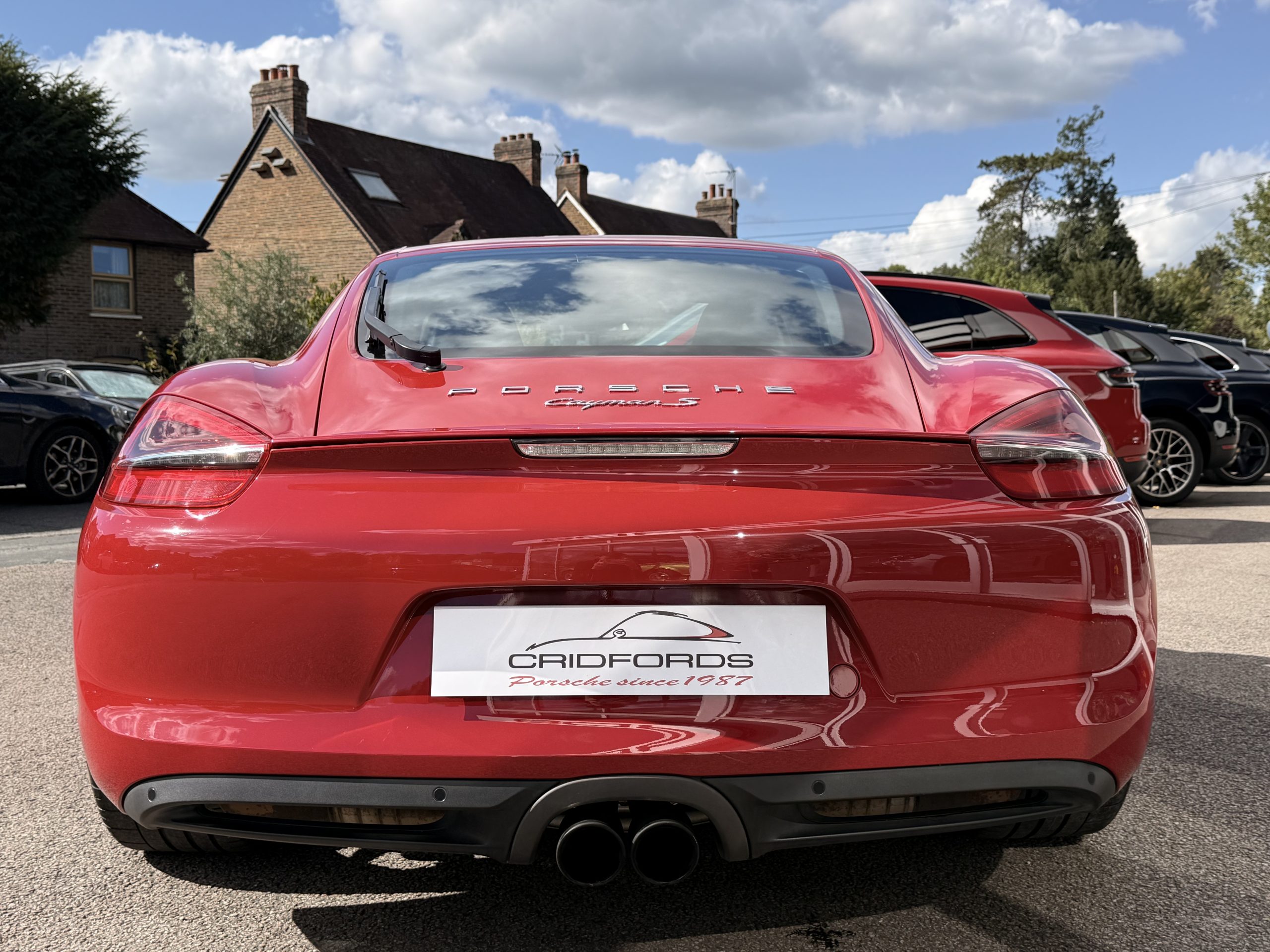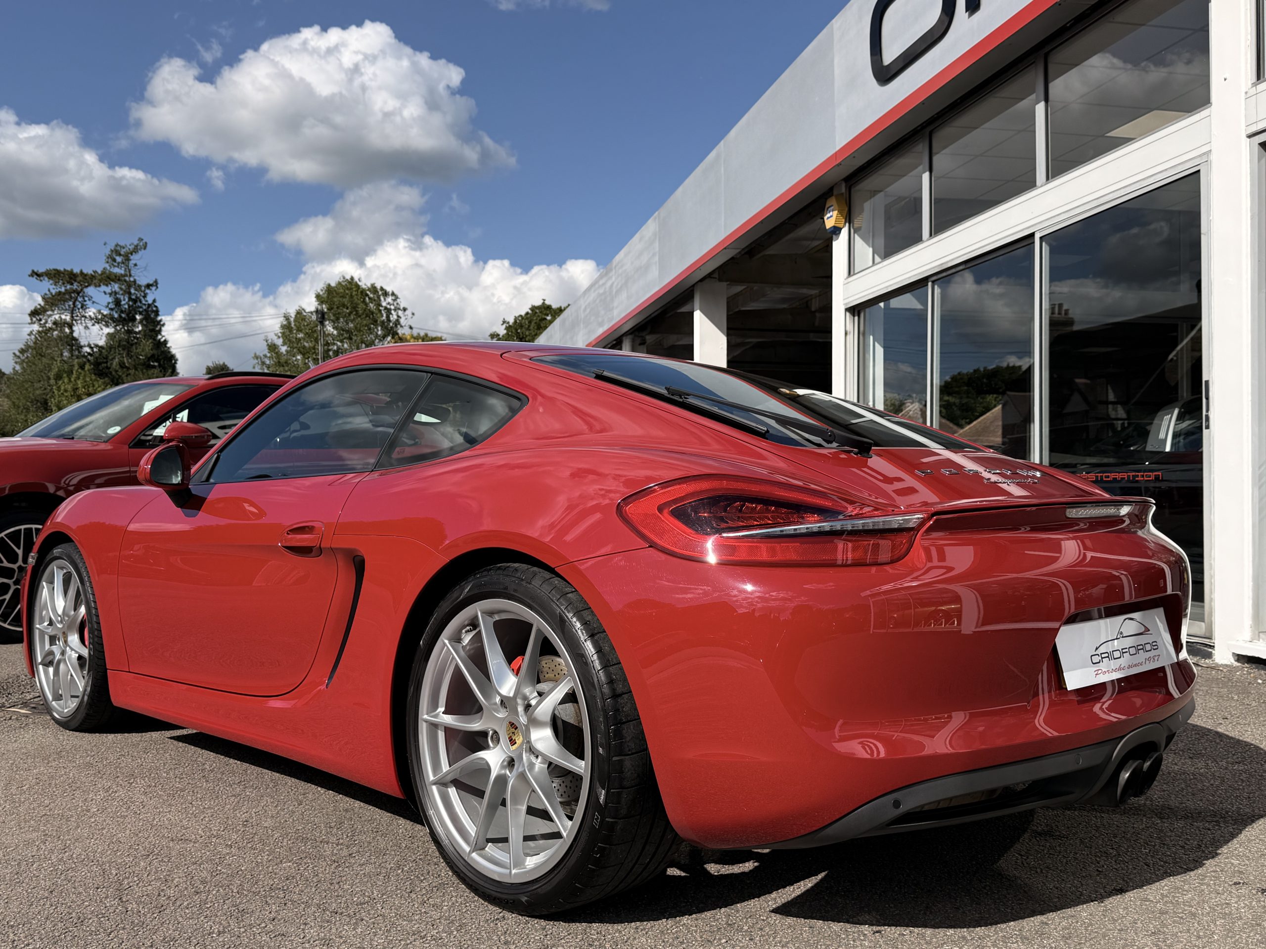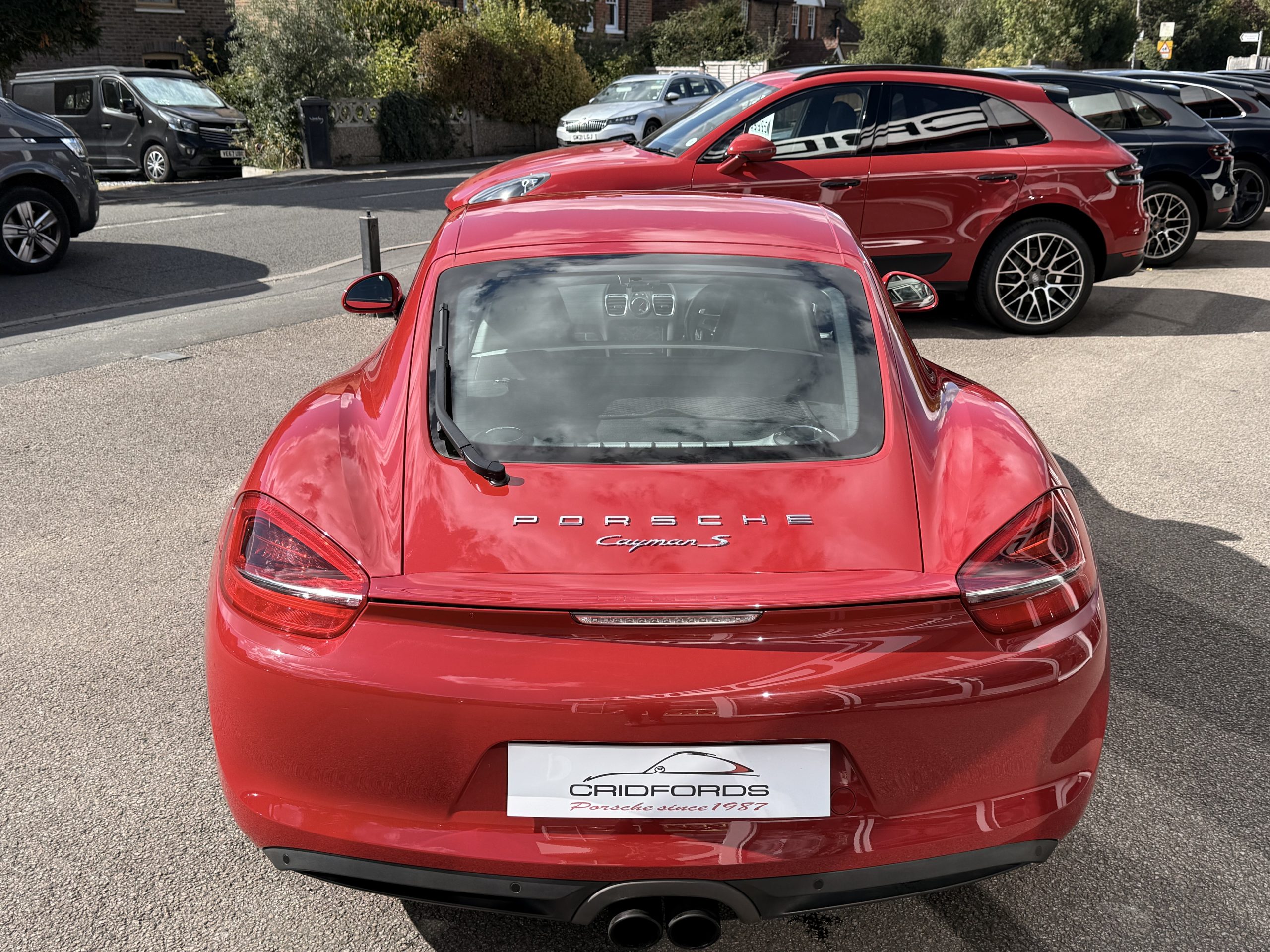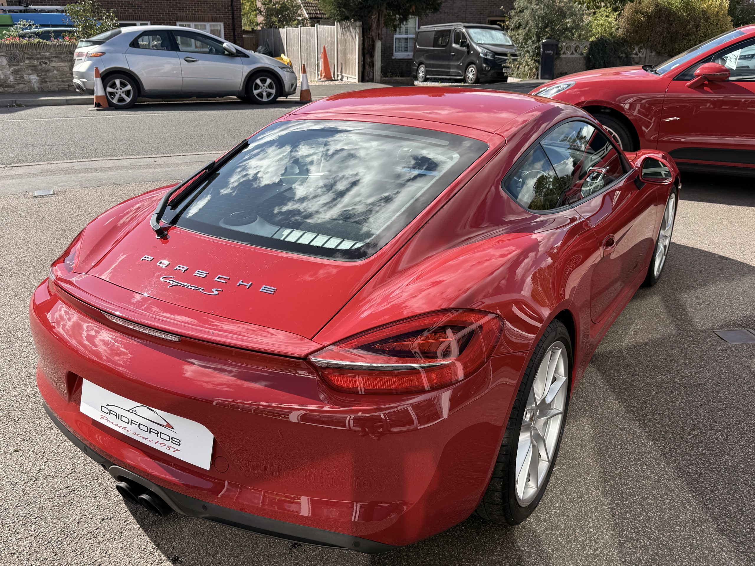 A stunning Cayman S finished in Carmine red trimmed with black leather. Equipped with PCM satellite navigation, 20″ Carrera S alloys, sport Chrono package plus inc. Porsche active dynamic mounts (PADM), Porsche switchable sports exhaust, Porsche active suspension management (PASM), Sport Design steering wheel, electric folding mirrors, rain sensing wipers, self dimming mirrors, front and rear park assist, Bi-Xenon headlamps with Porsche dynamic lighting system plus (PDLS+), hard back sports seats plus, rear wiper, Porsche sound package plus, Bluetooth phone and audio, DAB radio, heated seats, air conditioning and trip computer. Cridfords Ltd Independent Porsche Specialists since 1987, supplied with a full service history and 12 months warranty. Ask us about the Cridfords Care Package (available on cars up to 10 years old at point of sale) including an additional 12 months warranty and Gtechniq ceramic coating for only £1,295. Finance available from 7.9% APR and part exchange welcome.